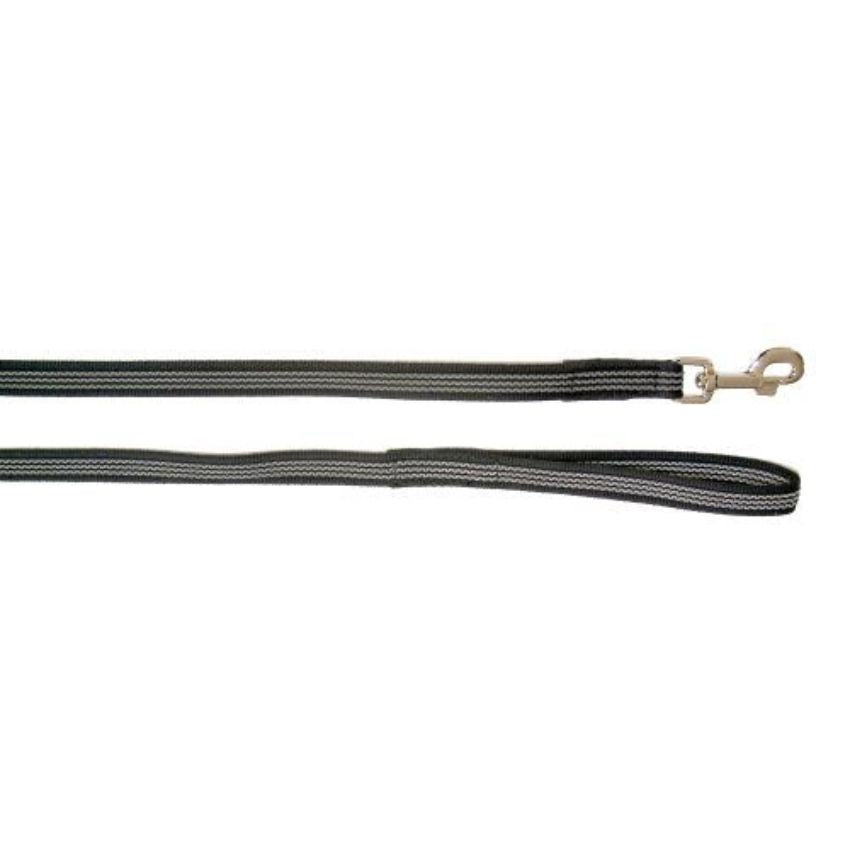 Working Leash made of cotton with rubber woven into it. You can hold on to it even when it's wet. This material has been used for horse reigns for decades. With hand loop.